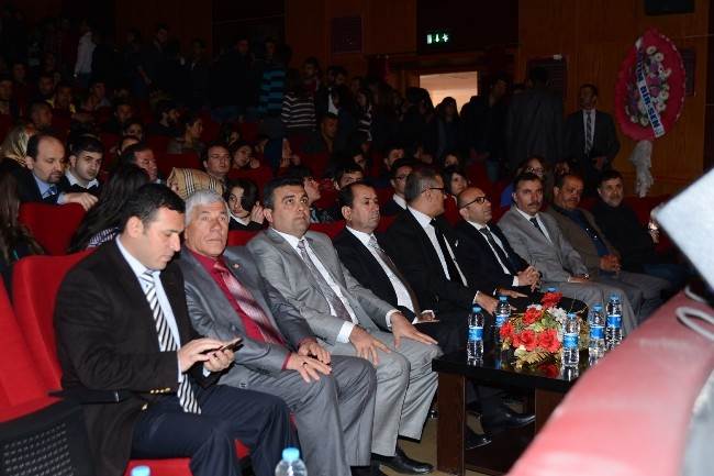 Konferans sonrasında Doç.Dr. Kantarcı’ya Rektör Yardımcısı Akıncı ve Kaymakam Çekmen tarafından plaket ve çiçek takdim edildi.