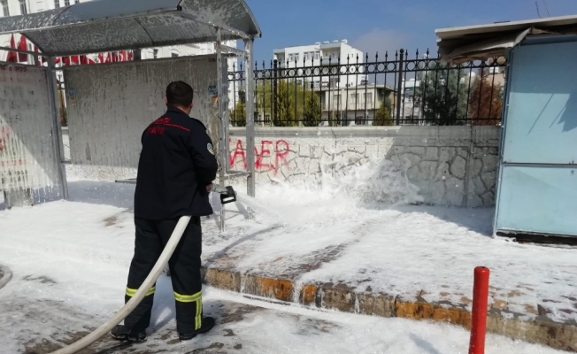 Virüse karşı kaldırım ve duraklar köpüklü suyla temizlendi