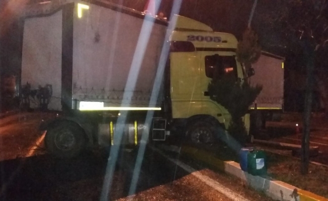 Adıyaman’ın Gölbaşı ilçesinde sürücüsünün direksiyon hakimiyetini kaybettiği tır, refüje çarparak durabildi.