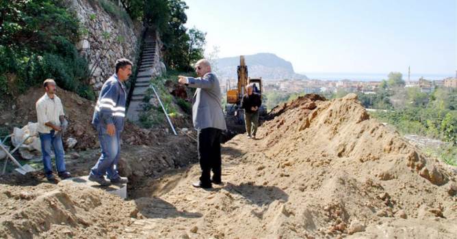 Kuzeydeki yerleşim alanlarında kanalizasyon altyapısını tamamlamayı hedefleyen Alanya Belediyesi, Küçükhasbahçe ile Tepe Mahallesi arasında yer alan Taşarası ve Benler Deresi Mevkii'nde kanalizasyon ve yol açma çalışmalarını aralıksız sürdürüyor. Oldukça derin vadi ve dik yamaçlardan oluşan yerleşim alanlarında önce yol açma çalışması yapan belediye ekipleri, istinat duvarları ve perde betonlarla desteklenen yeni yolda çalışmalarına devam ediyor. 2 bin 400 metre kanalizasyon hattının büyük ölçüde tamamlandığını kaydeden Başkan Vekili Dere, yaklaşık bir yıldır bölgede çalıştıklarını belitti.