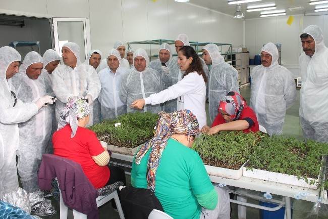 Heyet, Kumluca Ziraat Odası Başkanı Süleyman Kayhan’ı makamında ziyaret ettikten sonra Maki Fide Üretim Tesisleri’nde incelemelerde bulundu. Fide üretimi, aşılı fide, yetiştirme şartları konularında konuk üreticilere Ziraat Mühendisleri Kamile Arışlı ve Mehmet İlkuçan bilgiler verdi.
