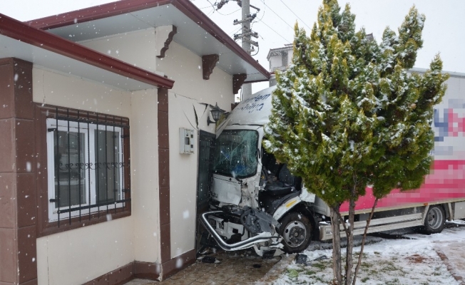 Aksaray’da 2 kamyonetin çarpışması sonucu meydana gelen trafik kazasında, çarpışmanın etkisiyle yoldan çıkan kamyonetlerden biri muhtarlık ofisine girdi. Kazada 4 kişi yaralandı.