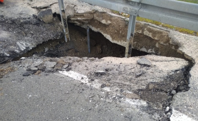 İlçe Trafik ekipleri çökmenin yaşandığı yerde önlem alırken, Karayolları ekipleri ise çalışmalara başladı.