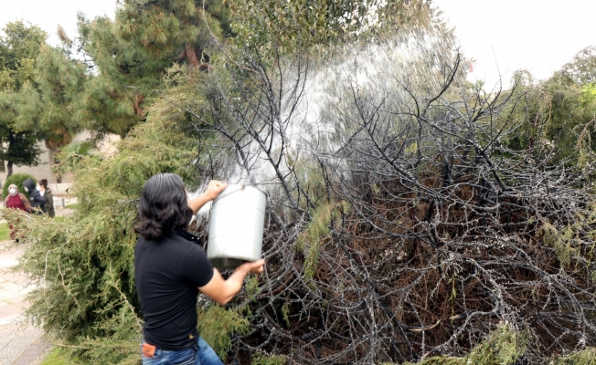 Samsun’da ladin ağacını yakıp kaçan şahıs, çevrede panik havası oluşturdu. Alev topuna dönen ağaç, süs havuzundan çöp kovası ile su alınarak söndürüldü.