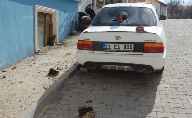 Tekirdağ’ın Malkara ilçesinde şiddetli fırtına nedeniyle bacadan fırlayan tuğlalar otomobile hasar verdi.