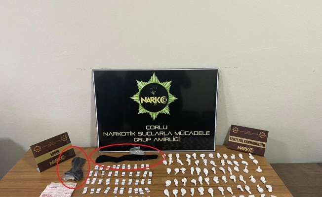 Narkotik Suçlarla Mücadele Şube Müdürlüğü Çorlu Grup Amirliği görevlilerince Hıdırağa (Kore) Mahallesinde uyuşturucu ve uyarıcı madde ticareti yapan şahıslara yönelik operasyon düzenlendi. Operasyon kapsamında şüpheliler ve adreslerde yapılan aramalarda, çoraplara ve poşetlere gizlenmiş 112 fişek bonzai, 130 fişek eroin, 1 fişe toz esrar ve uyuşturucudan elde edildiği değerlendirilen 740 TL ele geçirildi.