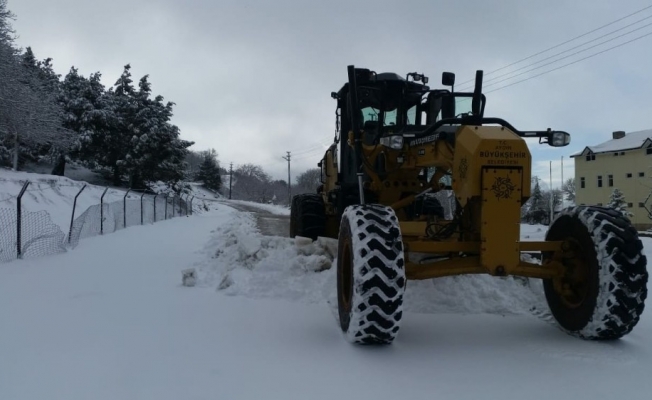 Aydın Büyükşehir Belediyesi ekipleri Aydın’ın yüksek kesimlerimde sabah saatlerinde etkisini gösteren kar yağışı sonrası çalışma başlattı.