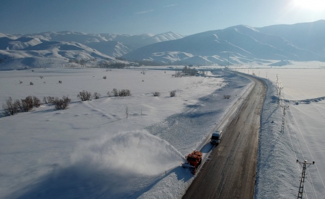 Ekiplerin yaptığı karla mücadele çalışmaları, drone ile havadan görüntülendi.