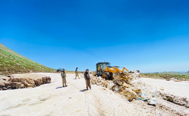 Şırnak’ın Uludere ilçesine bağlı Hilal beldesi yayla yollarında kar temizleme çalışmaları sürüyor.