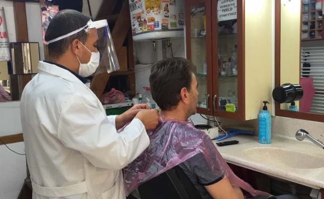 Uzun bir aranın ardından kontrollü bir şekilde açıldıklarını belirten berberler, “Tek kullanımlık örtü, tek kullanımlık kağıt havlu kullanıyoruz; randevu sistemi ile çalışıyoruz arada ‘bizi de sıraya al’ diyenler çıkıyor ama yapmıyoruz. Sakal tıraşı yapmıyoruz, saç fırçası kullanmıyoruz” derken, önlük ve maske zorunluluklarını anlattı.