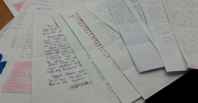 Savaşların olmaması temennisinde bulunan bir öğrenci ise mektubunda şu ifadelere yer verdi: "Keşke bu savaşlar olmasa, insanlar birbirini öldürmese, kırmasa, üzmese, herkes birbiri ile kardeş olsa, huzur içinde saygıyla, sevgiyle yaşasak. Biliyorum siz de bunun için ailelerinizden uzakta bunun için savaşıyorsunuz. Kötü ve hain insanlar vatanımızı bölmeye çalışıyorlar, sizlerin sayesinde bunu başaramayacaklar."