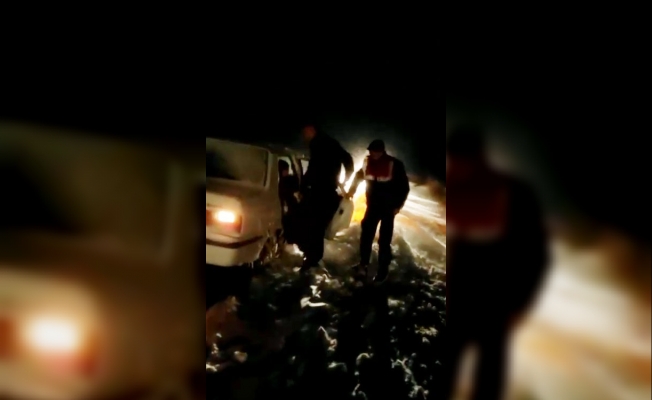 Açılmayan yolda mahsur kalan aileyi jandarma kurtardı