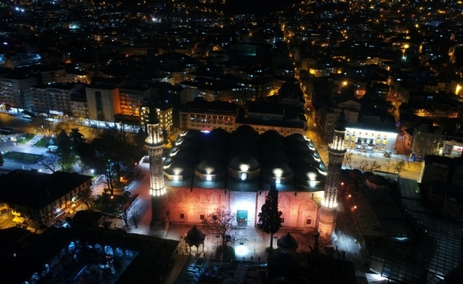 Tüm dünyayı ve Türkiye’yi etkisi altına alan korona virüse karşı yatsı namazından sonra camilerden dualar yükselmeye devam ediyor. Tarihi Bursa Ulu Cami’de de gün içinde vatandaşları uyarıcı anonslar yapılırken, yatsı namazında okunan dua da merkezi sistemle tüm camilerden dinleniyor. İçişleri Bakanlığı’nın aldığı sokağa çıkma yasağında Ulu Cami ve çevresinin sessizliğine karşı dualar yükseldi. Ayrıca Ulu Cami’nin yanı sıra Emirsultan ve Yeşil camileri de havadan görüntülendi.