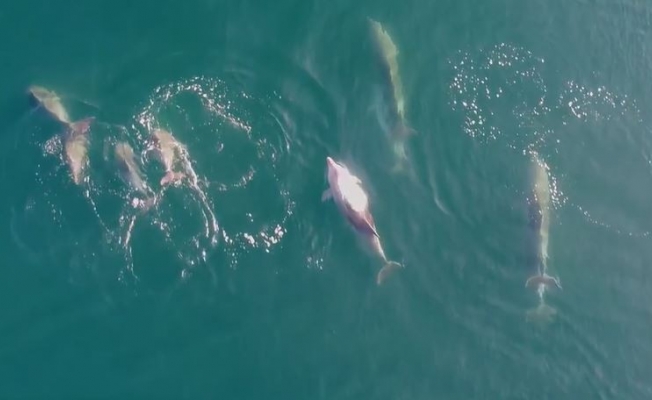 Drone ile takibe alınan yunuslar bir süre deniz yüzeyinde keyif sürdürdükten sonra bir anda gözlerden kayboldular. Denizin dibine doğru gözlerden kaybolan yunus balıklarından geriye muhteşem görüntüler kaldı.