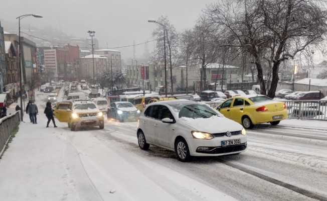 Zonguldak’ta tipi şeklinde aniden bastıran kar yağışı sonrasında araçlar yollarda mahsur kaldı. Yolda kalan araçların yardımına çevredeki vatandaşlar koştu.