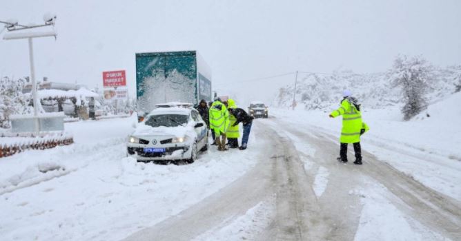 Antalya'nın Akseki ile Konya'nın Seydişehir ilçelerini bağlayan karayolunda yoğun kar yağışı nedeniyle zincirsiz araçların geçişine izin verilmiyor.