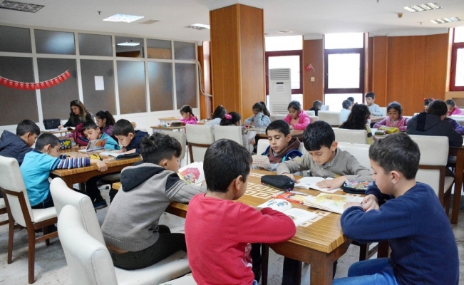 Kütüphaneye üye olmak isteyen çocukların kaydı yapılarak ödünç kitap almalarına imkan tanınırken, çocuklara bir saatlik kitap okumanın ardından çay ve simit ikramı yapılıyor.