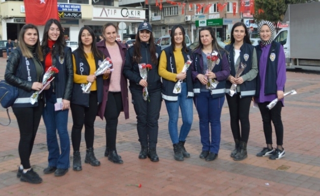 Kütahya’nın Tavşanlı ilçesinde 8 Mart Dünya Kadınlar Günü nedeniyle kadın polisler çiçek dağıttı.