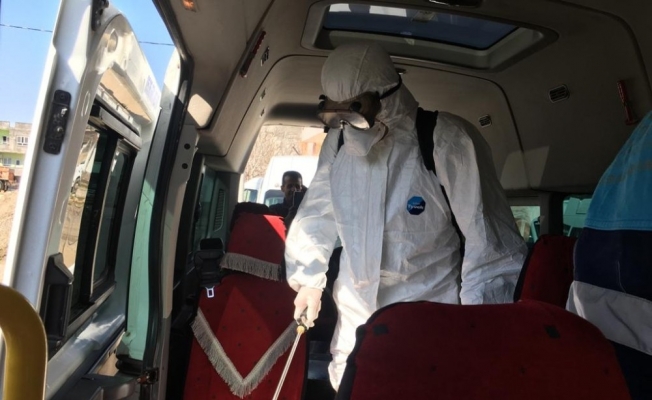 Mardin’in Mazıdağı ilçesinde, Mardin Büyükşehir Belediyesi Sağlık İşleri Başkanlığı tarafından toplu taşıma ve öğrenci servis araçları dezenfekte edildi.