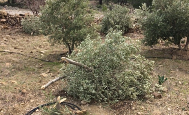 Edinilen bilgiye göre, Mehmet Erdoğan Dölek’e ait Hırmanlı Mahallesi Karatay mevkisindeki bahçede bulunan 30 zeytin ağacının tamamı, akşam saatlerinde kimliği belirsiz kişi ya da kişilerce kesildi. Vatandaşların ihbarı ile olay yerine giden jandarma ekipleri, kesilen ağaçlarla ilgili tutanak tutarken, muhtarın haber vermesiyle olaydan haberdar olan bahçe sahibi, sorumlulardan şikayetçi oldu.