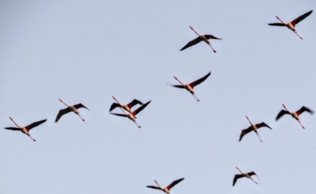 Muğla’nın Marmaris ilçe merkezinde sabah saatlerinde görülen göç eden flamingo sürüsünü vatandaşlar görüntüledi.