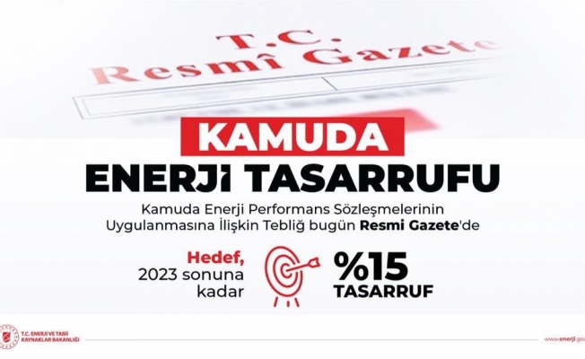Kamuda Enerji Performans Sözleşmelerinin Uygulanmasına İlişkin Tebliğ, Resmi Gazete’de yayımlandı. Enerji ve Tabii Kaynaklar Bakanı Fatih Dönmez, 2023 yılı sonuna kadar kamu kurum ve kuruluşlarında tasarruf hedefinin yüzde 15 olduğunu hatırlatarak, “Hedefi gerçekleştirmemiz durumunda elde edeceğimiz tasarruf miktarı yıllık 870 milyon TL olacak” dedi.