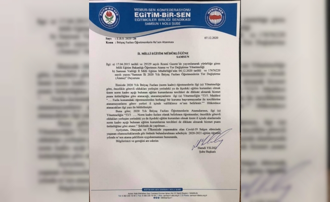 Başkan Yıldız konu ile ilgili olarak yaptığı sosyal medya paylaşımında şöyle dedi: “Samsun İl Milli Eğitim Müdürlüğü ihtiyaç fazlası öğretmenler ile ilgili çıkmış olduğu duyuruda MEB Öğretmen Atama Yer Değiştirme Yönetmeliği’nin 53/3. maddesini yok sayarak yeniden bir hak gaspına imza atmak üzere. Bakanlığımızın yönetmelik ile tanımış olduğu hakkı (mağduriyeti gidermek üzere) İl Müdürlüğü’nün görmezden gelmesi, eğitimin paydaşlarına kulaklarını her zamanki gibi tıkaması her yıl yeni mağduriyetler oluşturuyor. Bu yıl çıkarmış olduğu duyuruyu tekrar gözden geçirerek ihtiyaç fazlası öğretmenlere il içerisinde tercih hakkını yönetmelik gereği dahil etmesini bekliyoruz. İçinde bulunduğumuz pandemi döneminde öğretmenlerimize yeni zorluklar, mağduriyetler oluşturmayın. Konu ile ilgili resmi başvurumuzu pazartesi yapıp konuyu hukuki boyutları ile takip edeceğimizi ifade ediyor, sürecin buraya gelmeden düzeltilmesini bekliyoruz.”