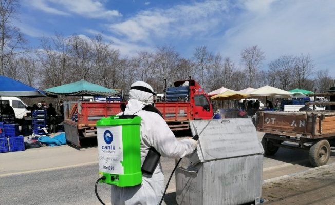 İlçenin tamamında çalışmaların devam ettiğini belirten Canik Belediye Başkanı İbrahim Sandıkçı, “İlçemizdeki kamu binalarının yanı sıra, sokaklarımızda, caddelerimizde, halk pazarlarımızda, fırınlarımızda hijyen ve dezenfekte çalışmalarımız bir program dahilinde devam ediyor. Merkez mahallelerimizin dışında köyden mahalleye dönüşen yerleşim alanlarımızdaki halk sağlığı merkezlerimizin, sokaklarımızın, yollarımızın, halk pazarlarımızın, parklarımızın, otobüs duraklarımızın da aynı şekilde hijyen ve dezenfekte çalışmalarını sürdürüyoruz. Bunların yanında yine çöp konteynerlerimiz de sürekli dezenfekte ediliyor. İnsanlarımız devletimizin, bakanlıklarımızın uyarılarına harfiyen uysunlar. Zorunlu olmadıkça evlerimizde kalmaya devam edelim. Hem sağlıklı kalalım, hem de salgın riskinin yok olmasına yardımcı olalım” dedi.
