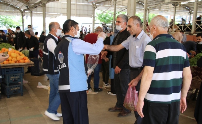 Haliliye Belediyesi korona virüs salgınından korunma tedbirleri kapsamında yürüttüğü faaliyetleri aralıksız sürdürüyor. Bu kapsamda Temizlik İşleri Müdürlüğüne bağlı ekipler, Süleymaniye Mahallesinde bulunan cadde ve sokaklarda yıkama ve dezenfekte çalışması gerçekleştirdi. Öte yandan Haliliye Belediyesi Zabıta Müdürlüğü ekipleri de salgınına karşı korunma tedbirleri kapsamında ilçedeki semt pazarlarını denetleyerek, esnaf ve vatandaşların ateşlerini ölçüp, maske, eldiven ve dezenfektan dağıttı. Zabıta ekipleri, ayrıca semt pazarlarında sosyal mesafe, birim alanda alışveriş yapabilecek vatandaş sayısı, sebze ve meyvelere eldivensiz dokunmaması konusunda uyarılarda bulunarak, belirlenen kurallara uymayan esnaflara cezai işlem uygulanacağını bildirdi.