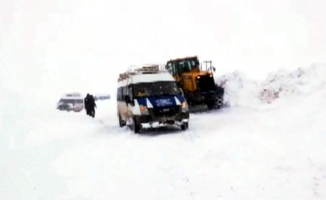 Kar ve tipide mahsur kalan 20 minibüs kurtarıldı