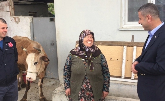 Belediye yetkilileri tarafından teslim alınan Kerziban teyzenin ineği satılarak parası ’Biz Bize Yeteriz Kampanyası’ kapsamında açılan hesaba Kerziban Düşkün adına yatırılacak.