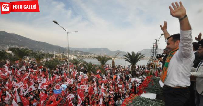 MHP Alanya Belediye Başkan Adayı Adem Murat Yücel, binlerce kişi ile Devlet Hastanesi kavşağından iskele bölgesine kadar yürüdü. Yürüyüşe Büyükşehir Adayı Kemal Çelik, Antalya Milletvekili Mehmet Günal ve MYK Üyesi Hüseyin Yıldız da katıldı. Yürüyüşte Yücel ve Çelik’e vatandaşlar karanfiller atarak destek verdi. Vatandaşlar ise balkonlardan Türk bayrağı salladı, çiçekler attı. Partililer yürüyüşe katılımın 20 bin civarında olduğunu söyledi.