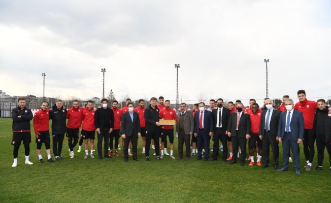 Samsun Büyükşehir Belediye Başkanı Mustafa Demir, liderlik mücadelesi vereceği Giresunspor maçı hazırlıklarını tamamlayan Samsunspor’a baklava ikramıyla destek verdi.
